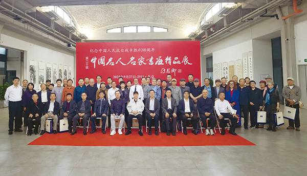 2025年9月27日,北京世纪名人国际书画院主办的以“纪念中国人民抗日战争胜利80周年”为主题第二十届中国名人名家书画精品展在京开幕,参展书画家合影留念。